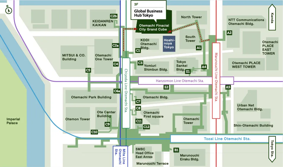 You can access without getting wet, even on rainy days. Direct access is available from Otemachi Station and Tokyo Station.